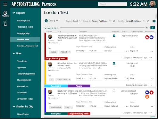 AP Playbook gives decision makers and newsroom users access to create and view day-of and future coverage plans for every format, helping editors prioritize coverage and reporters manage assignments. Less time making plans means more time telling the stories that will grow your audience.