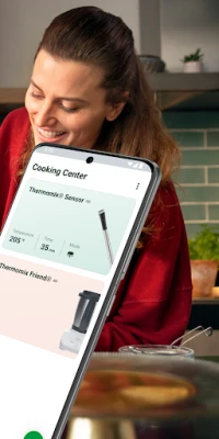 Easy, simple and smart. Thanks to the Cooking Center app, you can always monitor the remaining time and temperature detected by the Thermomix® Sensor, whether programmed manually or through Guided Cooking. Select the desired cooking point for your food and receive notifications to be informed when your food is ready. Bring the simplicity of smart technology to your kitchen for a connected cooking experience.