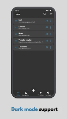 ◻ Organize links into custom categories and access them quickly. ◻ Store your private links in a password-protected private category. ◻ Search and share links and link lists from within the app. ◻ Switch between dark mode and light mode. ◻ No ads and no need to log in. ◻ Data is stored only on your device.