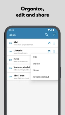 LinkVault is an application that simplifies the management of your favorite links and gives you instant access to them with just one tap. Save your essential links, websites, URLs of interest and much more, all from a single app!