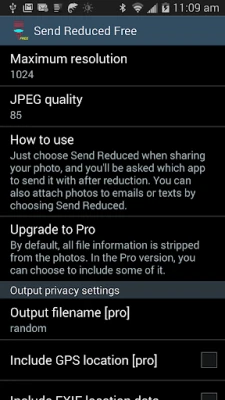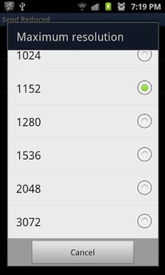 You can adjust the resolution and quality of the reduced photo by running Send Reduced from your launcher.