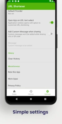 - Shorten down large links using multiple shortening services. - Share URL's as simple QR codes - Save generated QR codes - Easily accessible text tooltip that lets you shorten code from anywhere - View complete history of shortened URL's - Multiple link shortening services
